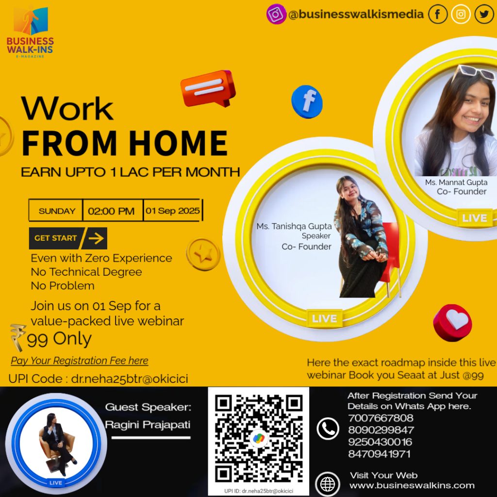 Work From Home Earn up to 1 Lac Per Month Join Live Webinar 31 Aug 2025